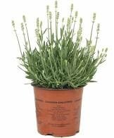 Lavandula angustifolia 'Alba' ofwel Witte Lavendel is een lavendelplant met witte bloemen en grijze bladeren. De Witte Lavandel is een zeer geliefde vaste plant vanwege zijn prachtige bloei en heerlijke geur. Een prachtige plant in bloei! Ook na de bloeitijd blijven de halfuitgebloeide stengels van de Lavandula angustifolia 'Alba' nog lang staan. De uiteindelijk hoogte van deze plant is ca. 40cm, u kunt er voor kiezen om deze Lavendel als haagje te gebruiken of een plantvak mee te vullen. Daarnaast wordt deze Lavandula angustifolia 'Alba' ook veel in potten gebruiken, om uw terras te verfraaien.