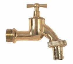Messing regenton kraan die in de loop der jaren mooi verweerd in een donkere koperen kleur. Zeer luxe aansluiting, voor professioneel gebruik. Op het uiteinde kunt u een slang aansluiten (zonder koppelstuk)